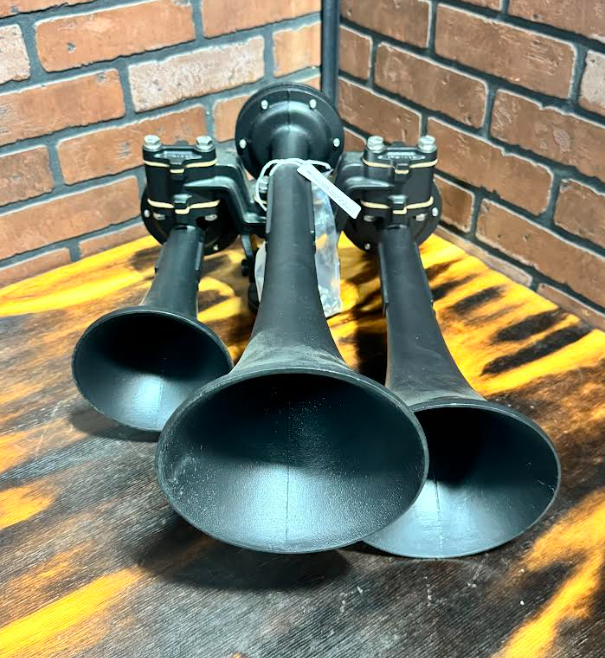 IMPORTANT: Our Nathan AirChime train horns are sourced from retired locomotives and undergo extensive reconditioning. This process includes sandblasting, a new black powder coat finish, and replacing all internal components such as diffuser rings, diaphragms, and cushion rings. This ensures each horn performs like new and retains its authentic locomotive sound.
