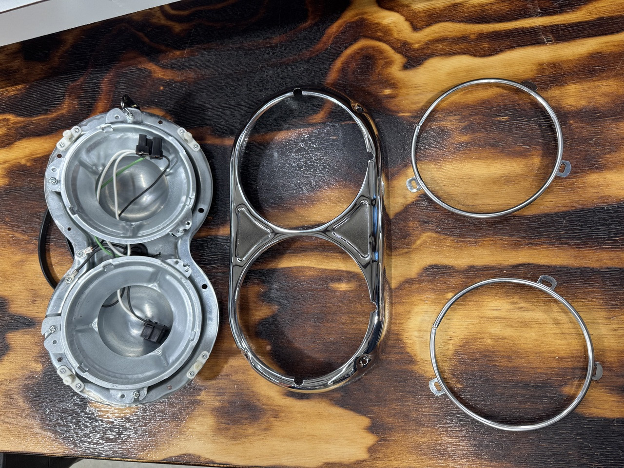 Loading... Please wait...HEADLIGHT BUCKETS. INCLUDES BUCKET, WIRING, RINGS AND STAINLESS BEZEL. SOLD PER EACH SIDE